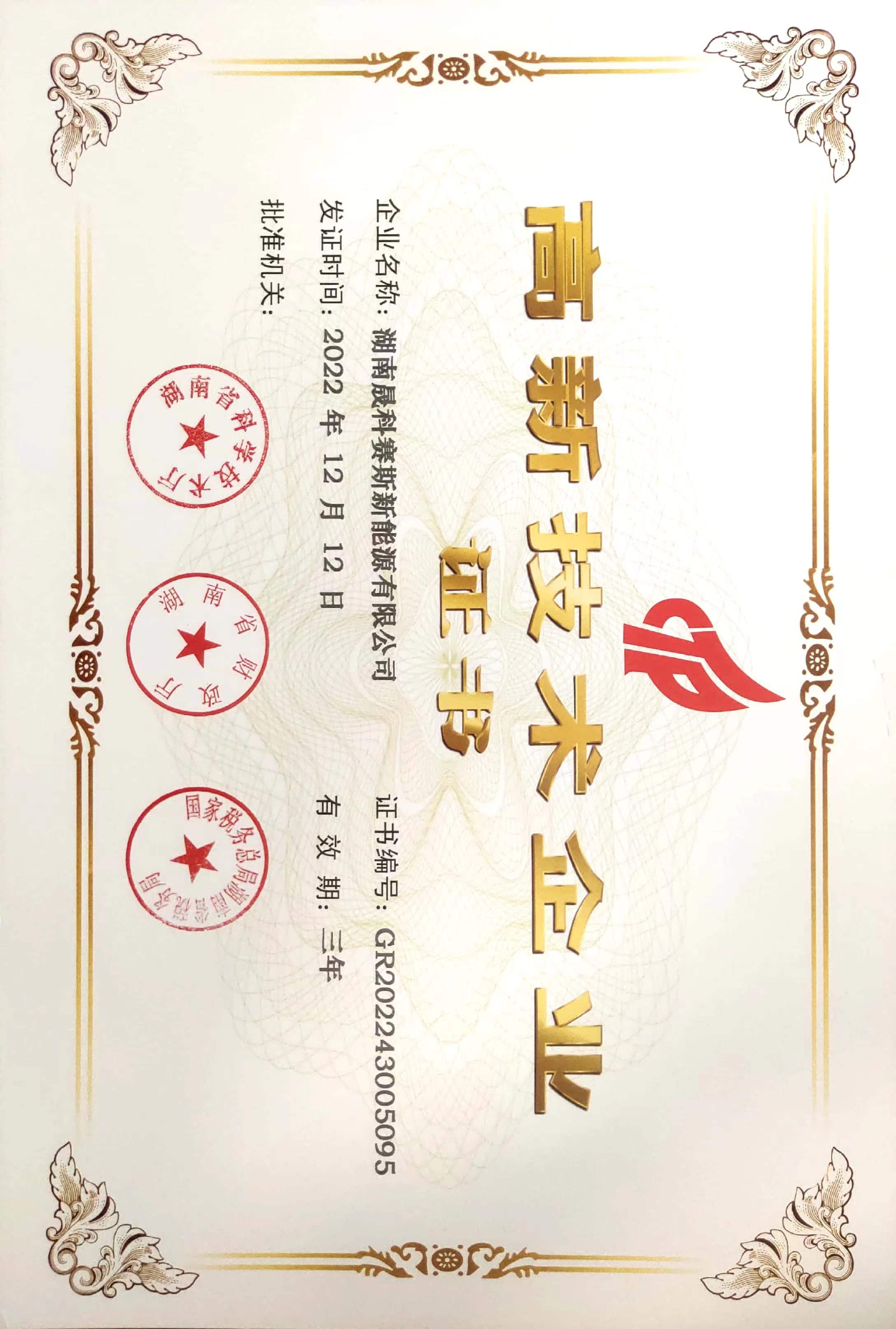 熱烈祝賀湖南晟科賽斯新能源有限公司獲得國家高新技術企業(yè)證書。【點擊詳情】